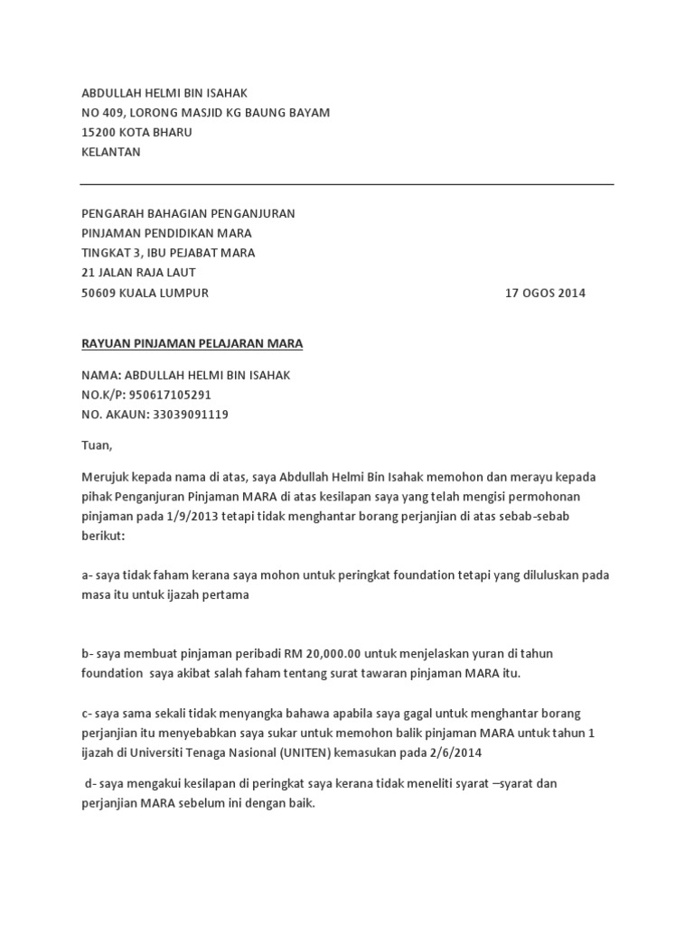 Surat Rasmi Permohonan Rayuan Mara Pdf